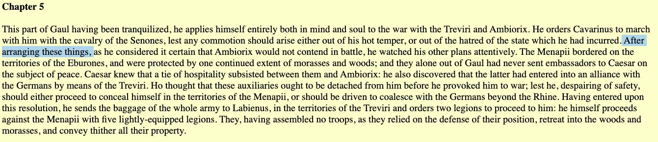 One of the best figures of speech Caesar constantly uses in his writing: variations on "these things having been done/achieved..." ...you should learn to meditate on this in your life. Powerful mindset. That will be my "motivational speaking" for the year. From Gallic Wars 6.5