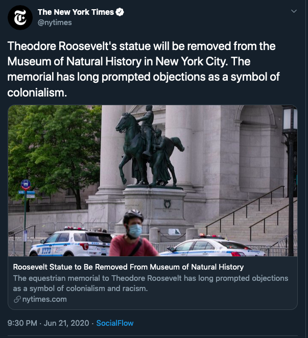 His descendants are still around and have prominent place in high society, the arts, etc.; is this being removed at request of an ideological mob, or of a new "elite" faction upset they see monuments dedicated to perceived rivals' ancestors, names etched in buildings, etc.