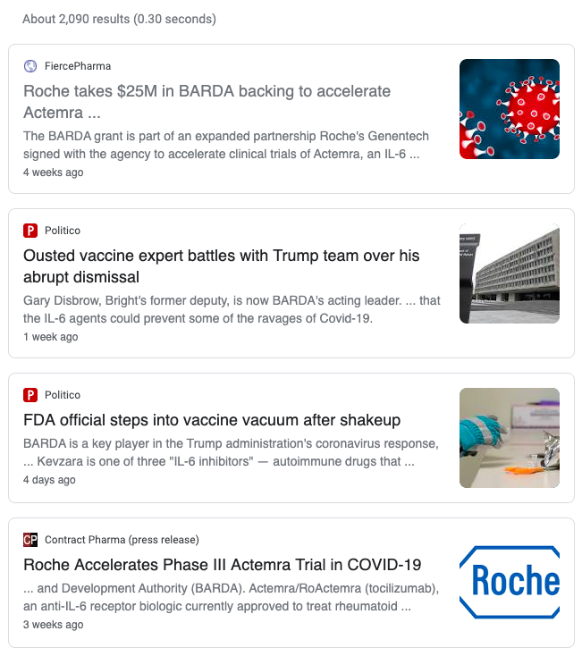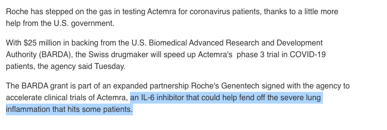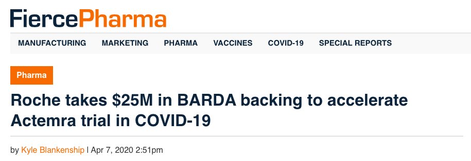 BARDA was tasked with pandemic preparedness but they spent March not stockpiling masks, gloves, etc., but funding extremely dangerous, ineffective IL-6 "treatments," which is interesting given Fau*ci's own history with corrupt patents for IL-2 treatments patents.justia.com/inventor/…