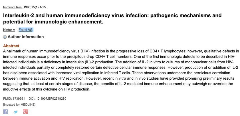 Hey did you know DOCTOR Fauci is a medical genius? He holds a patent in a powerful anti-HIV treatment...but you never hear about it from him or from the media that adulates him...why is that? Maybe because the IL-2 treatment he patented kills people bio.net/bionet/mm/immuno/199…