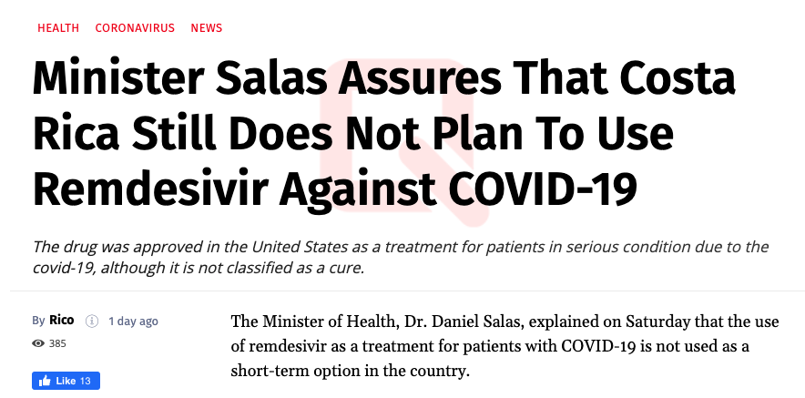 Costa Rica is using hcq and not remdesivir because it follows the advice of Orange Drumpf and is against Teh Science (TM)