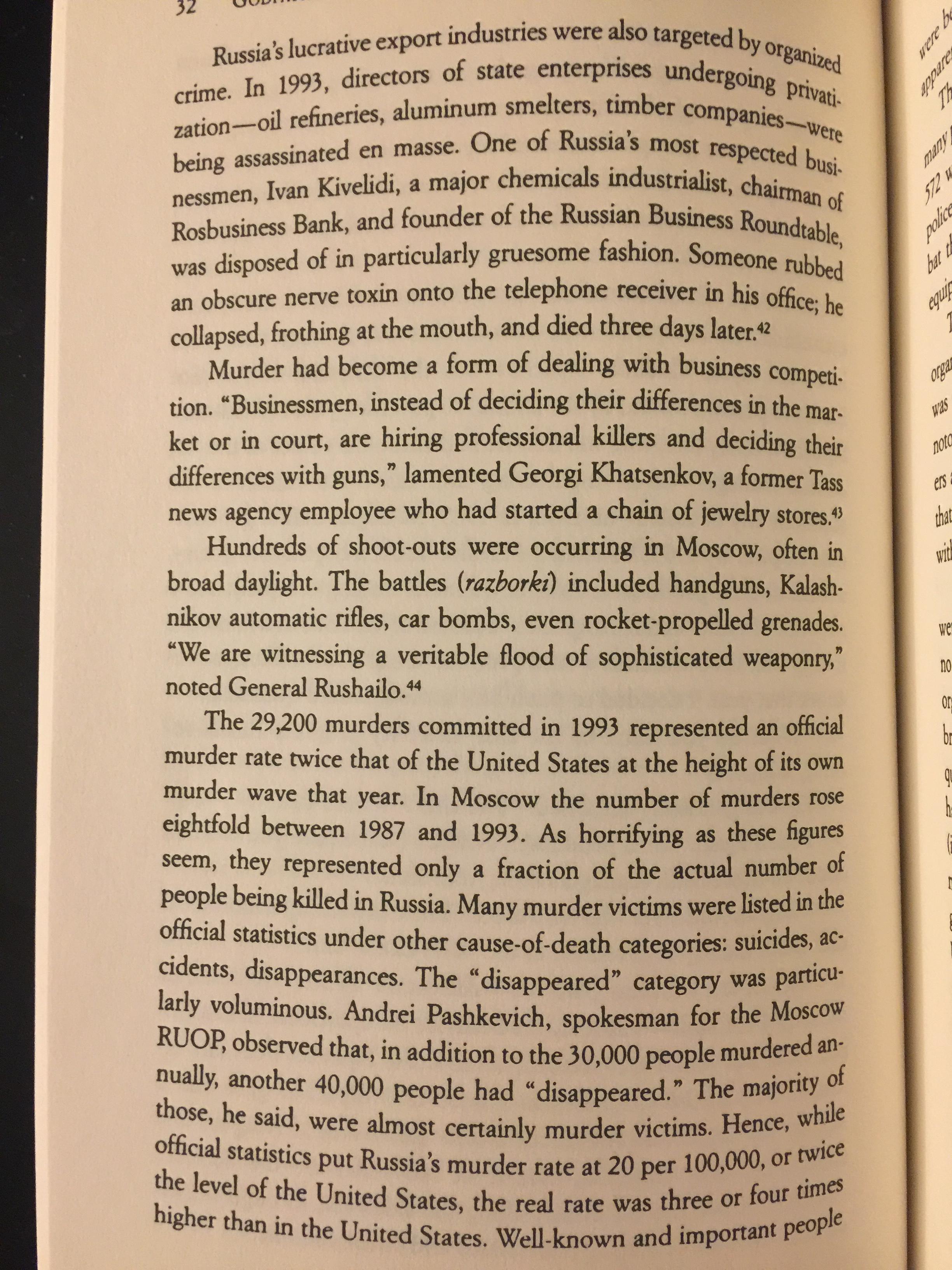 Moscow in the early 1990's, death rate calculated by Paul Klebnikov in "The Godfather of the Kremlin." Remember when globalist usurper class praises Teh Liberalism of time before Putin in Yeltsin years as something great and something they want to bring back to Russia...