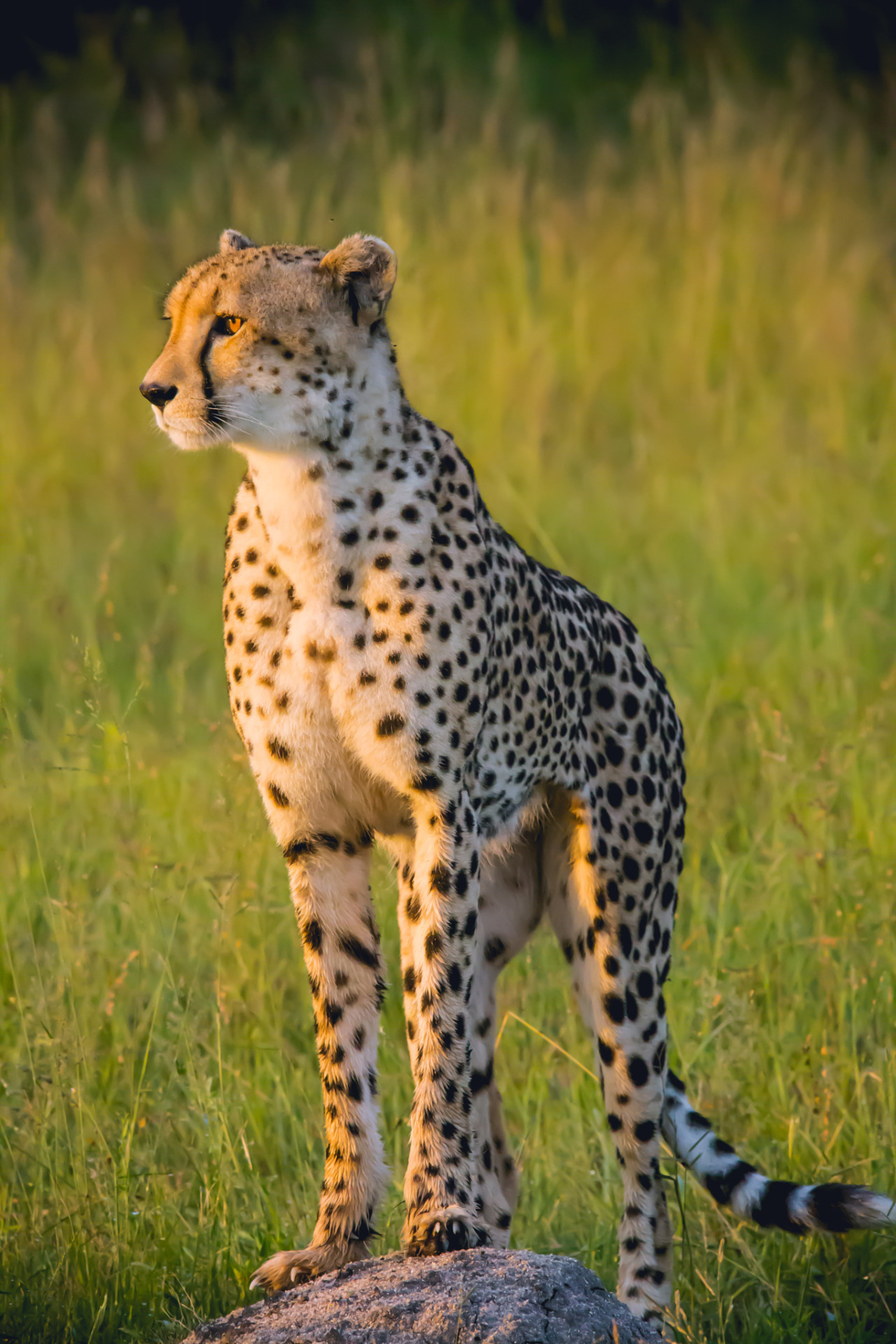 Elegant Cheetah looks out on field on #BigCatMonday hunt together with English frog adventurer (Persian princes learned art of hunting with cheetah, as hunting with dogs, long ago)