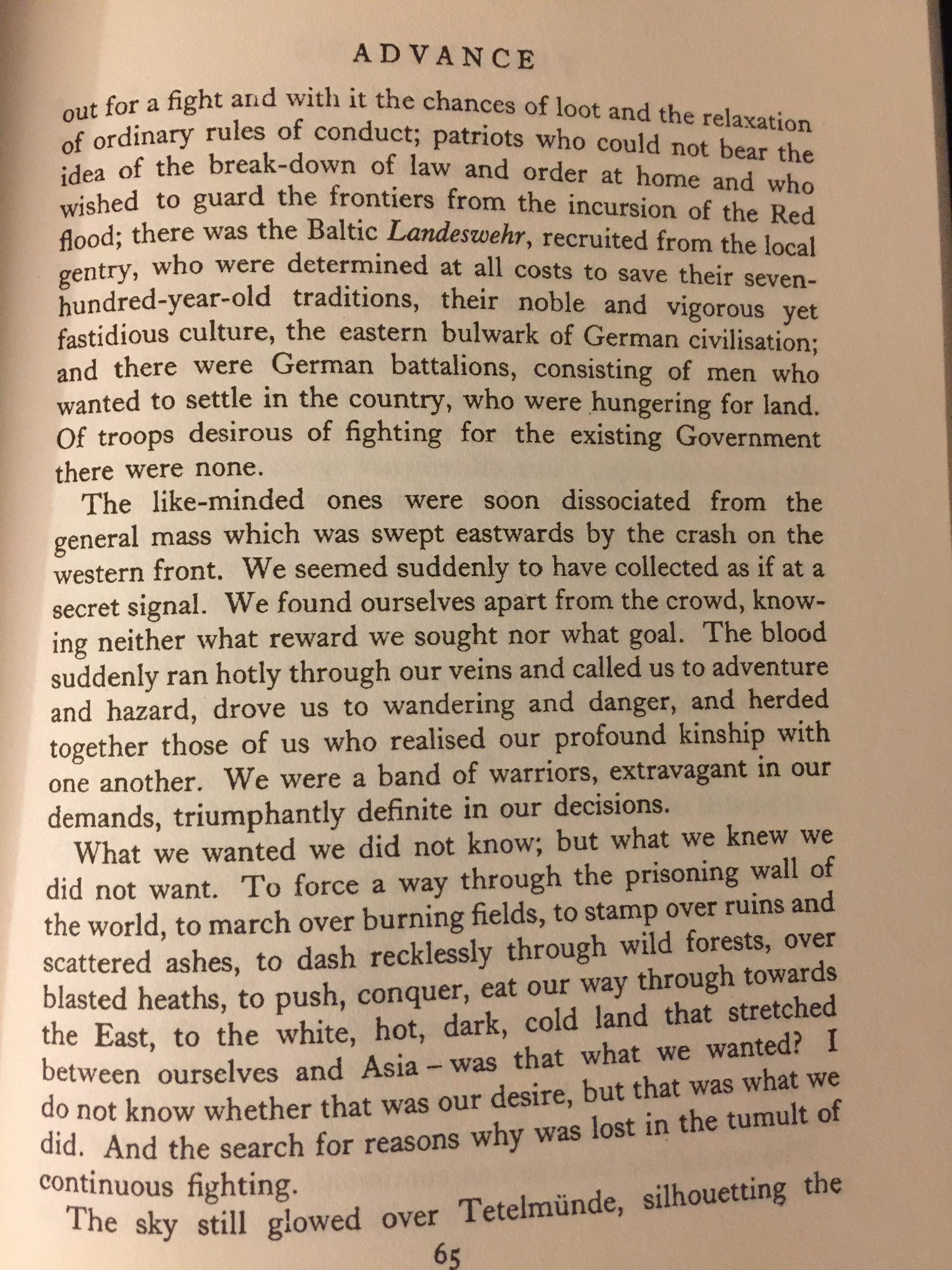 Rousing two paragraphs from Ernst von Salomon's The Outlaws, book I talk in second part of this episode; about rush of excitement his time in the Freikorps. Always liked this book and this passage, feeling of freedom and possibility--vitalism! Vitalism will return...