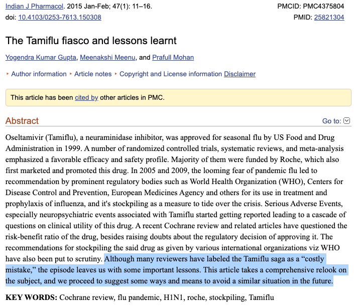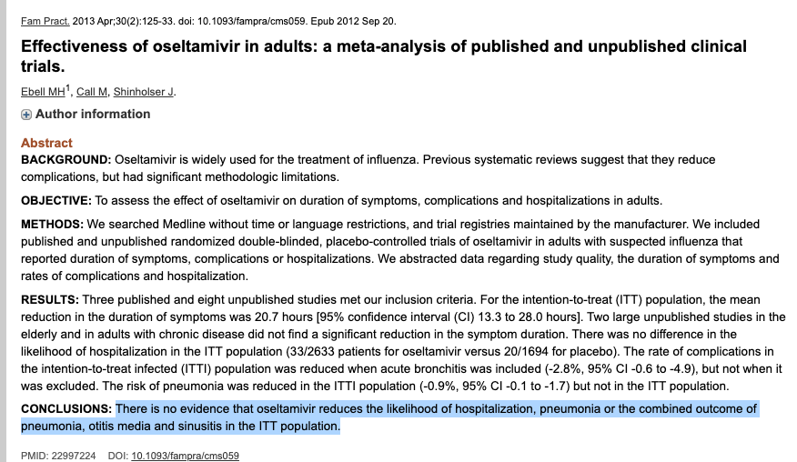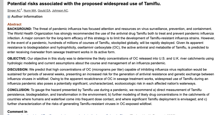 Are these studies THE SCIENCE (tm) too or just those that increase profits for expensive and possibly dangerous drugs that WHO then pushes governments to stockpile? ncbi.nlm.nih.gov/pubmed/2299… ncbi.nlm.nih.gov/pubmed/1736… ncbi.nlm.nih.gov/pmc/article… ncbi.nlm.nih.gov/pmc/article…