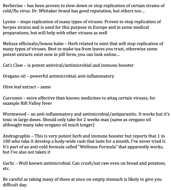 I give list, general advice for immune boost in winter, not just against coronavirus (but first page is especially relevant for those strains). Because some of these work against some pathogens but not others, best to "throw kitchen sink" and use as many as possible