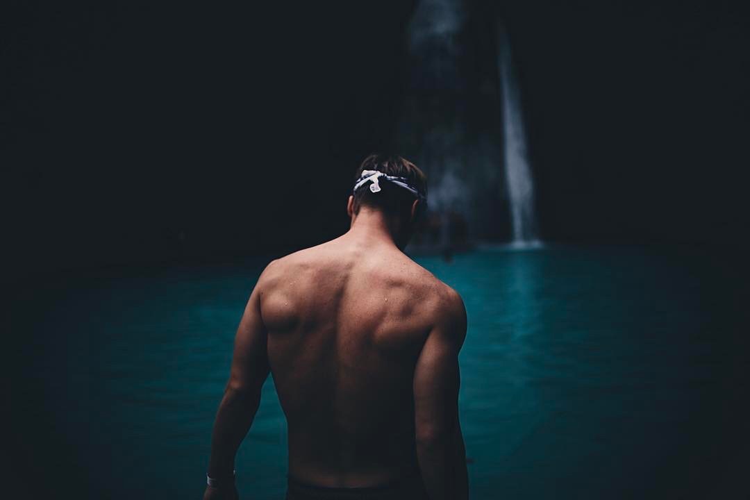 He has put bandana on head it read "And how will one hide from that which never sets?" in ancient lost language. Approaches hidden underground waterfall in Vanuatu...he knows... #HandsomeThursday