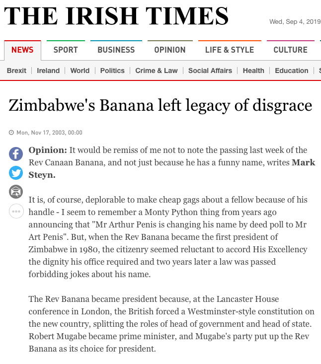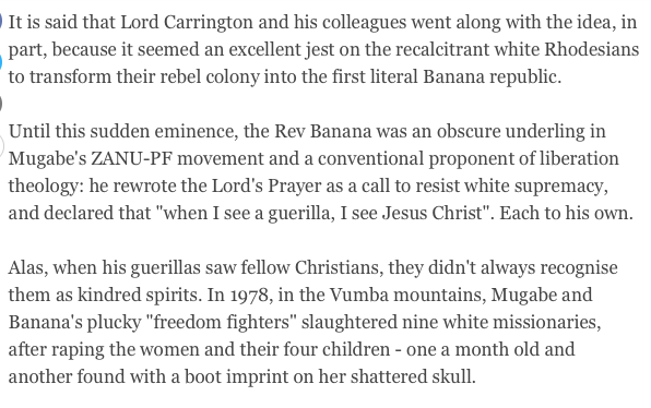 Very good and funny Mark Steyn article about end of Rhodesia and the shortsighted foolishness of Western ruling class irishtimes.com/news/zimbabwe… Poasting screenshots in case it gets disappeared as it so often does... 1/2