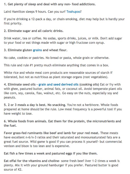 any links? Also I never understood his diet to call for cutting starches. That said, I do believe starches are dangerous in general in the modern world. Fruit and veg is a safer choice of carbs imo
