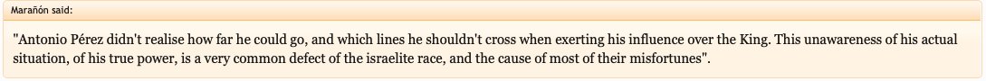 From very good history book by Spanish doctor Gregorio Marañón on Antonio Perez, very influential court advisor for Philip II, who overreached and caused his own downfall. A quote from book I thought was interesting: